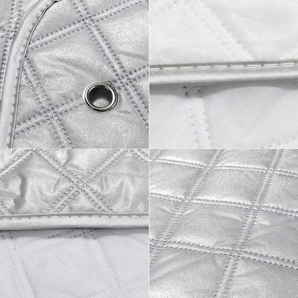 3.In summer, The silver side faces outwards and reflects the sun to keep the vehicle cooler in summer and is reversible for winter, In winter, retains heat and keeps the interior warmer to prevents condensation, Tested from -20°C to +50°C