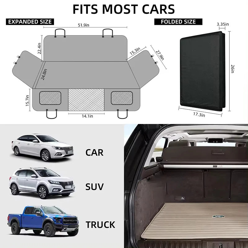 This Dog Car Seat Cover transforms your back seat into a comfortable, spacious resting area for your pet, making road trips safer and more enjoyable. Designed to prevent dogs from falling during sudden stops or energetic movements, this car bed offers a secure and cozy space. It’s made from waterproof, non-slip, and wear-resistant material, ensuring easy cleaning and long-lasting durability. Measuring 52*25 inches, it fits most cars, SUVs, and trucks with headrests. Installation is quick and easy with adjustable straps and buckles. This versatile product ensures your pet’s comfort and safety, making every journey a pleasant experience.