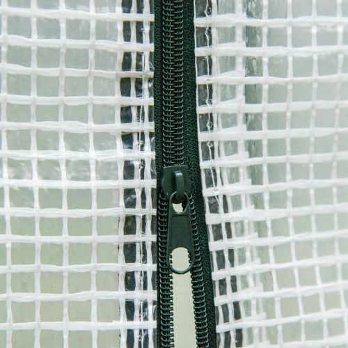 - PLASTIC COAT: Protects plants from the cold and wind outdoors so they can grow to their full potential. large roll-up door to enter and to let in fresh air when required. Long edges to bury in soil and weight down.